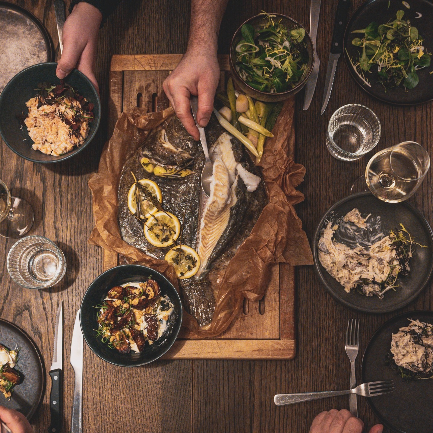 Velanrettet delemenu, der skaber omdrejningspunktet for hele aftenen.
